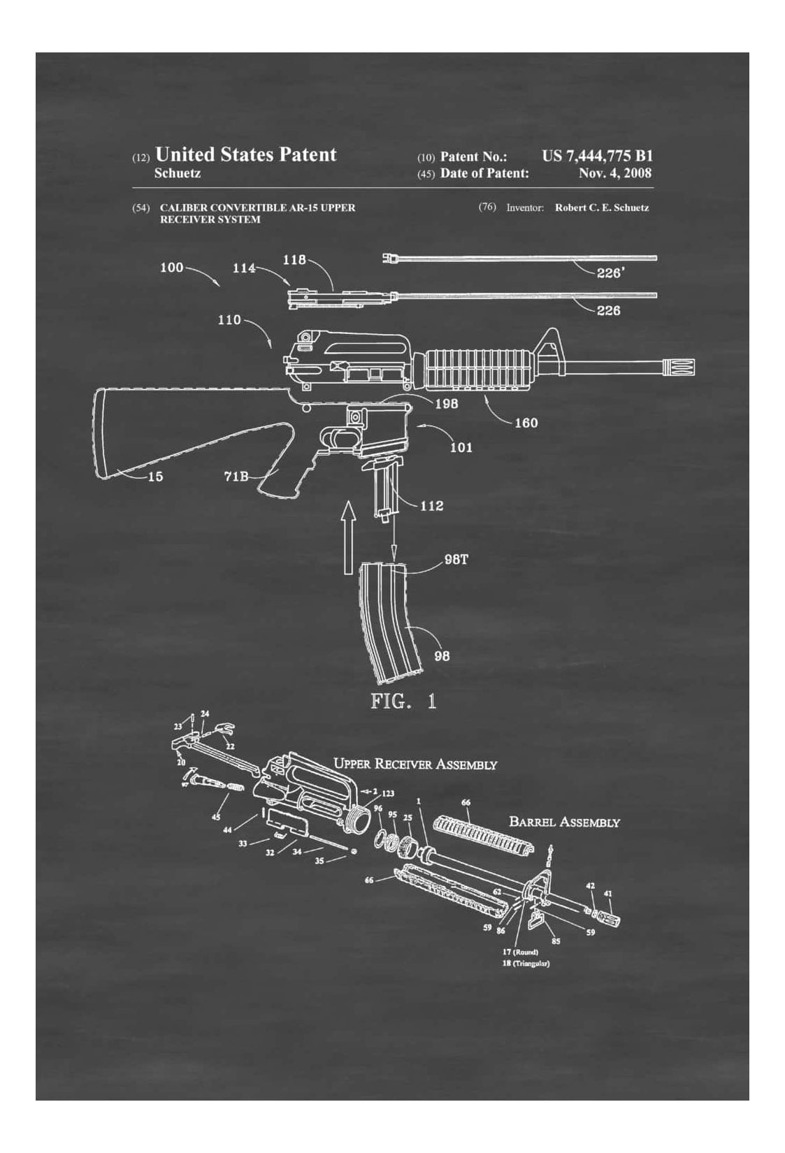 AR-15 Rifle Caliber Converter Patent - Patent Print, AR-15 Patent, Rifle Patent, Gun Art, Firearm Art, Firearm, AR-15, Military Art