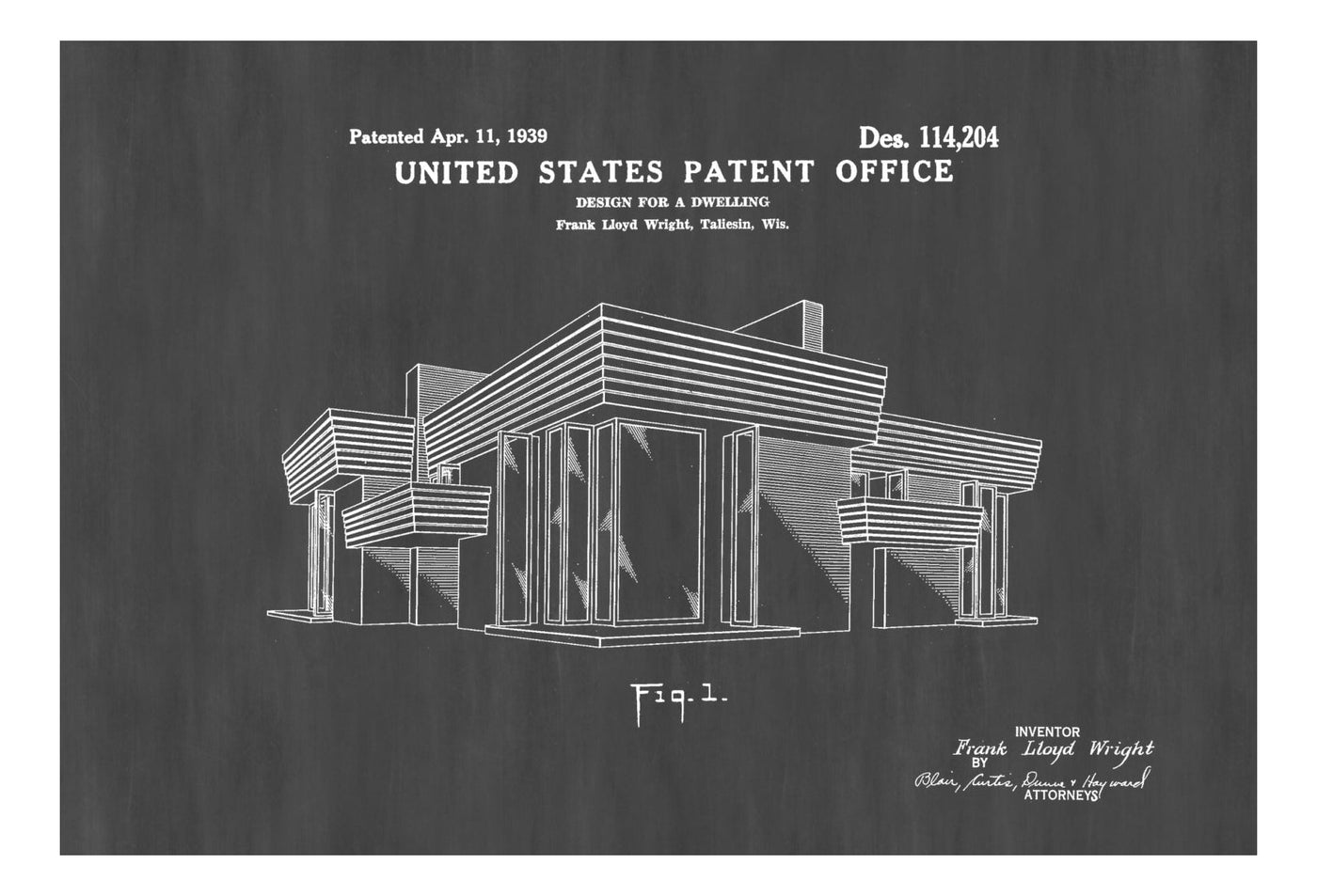 Frank Lloyd Wright House Design Patent - Decor, Patent Print, Wall Decor, Frank Lloyd Wright House, Frank Lloyd Wright Patent